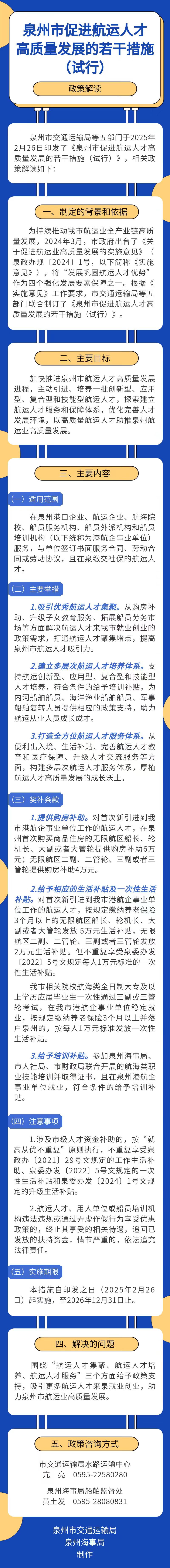 促进航运人才高质量发展的若干措施(试行)》(泉交规〔2025〕1号)