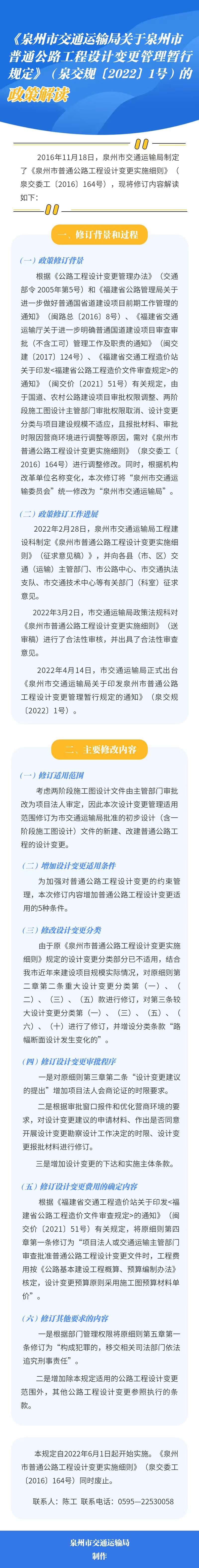 普通公路工程设计变更管理暂行规定》(泉交规〔2022〕1号)